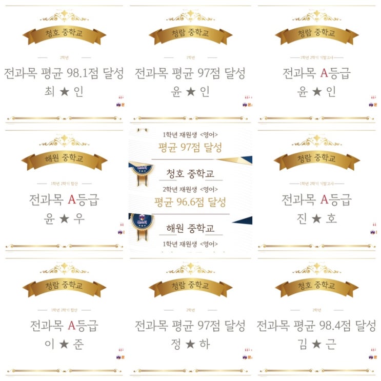 <청라 5단지 수학> 중등부 수학 100점 공개!