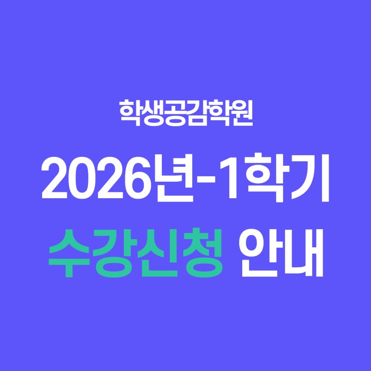 안녕하세요. 학생의 성장을 끝까지 책임지는 학생공감학원입니다. 3월 2일(월), 1학기 개강이 일주일 앞으로 다가왔습니다. 교재 준비 및 반 편성, 학습 관리의 원활한 진행을 위해 2/21(토) ~ 2/28(토) 약 일주일간 3월 수강신청을 진행합니다. 신중한 선택을 부탁드립니다.^^ 수강신청 하기 전, 꼭! 읽어주세요. 1. 수강신청 방법 안내 학생과 학부모님께서 충분히 상의하신 후, 학생 또는 학부모님 중 ‘한 분’만 신청해 주세요. (중복 신청 방지) 2. 자동 배정 안내 (중요) 2/25(수)에는 3월 교육비 안내 문자가 발송됩니다. 해당 날짜까지 수강신청이 완료되지 않은 경우, 2월 수강 과목과 동일 과목으로 자동 배정됩니다. 예시) 2월 수학....... <img src="https://blogthumb.pstatic.net/MjAyNjAyMjFfMTM2/MDAxNzcxNjQ4ODE4ODI2._gAfbi9EiDuvA2SLURD3m9J_J2X2ctvv2J6kAJy8B6Ig.Bdf-Syfc_Guwkub1MmVygYzLcfj-P_ZuUyQBCxPrU7gg.JPEG/%C1%A6%B8%F1%C0%BB_%C0%D4%B7%C2%C7%CF%BC%BC%BF%E4_%2870%29.jpg?type=s3" />