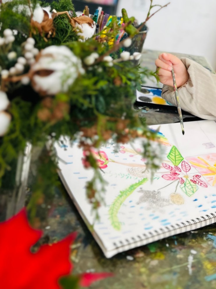 12월 미술시간에는 늘 그렇듯 크리스마스 꽃과 나무를 한가득 들여와 포인세티아를 관찰해보고 다양한 겨울의 식물들도 함께 그려보았습니다. 문을 여는 순간 싱그러운 향기가 가득하다며 좋아하고, 꽃은 언제 그려도 즐겁게 행복하게 그리는 우리들입니다. 아름다움을 보고 느끼며 표현하는 르네드뮤제 친구들입니다. 잎의 모양과 형태, 다양한 식물의 특징을 놓치지 않으려 집중해서 연필선을 정리하며 스케치를 완성했습니다. 또 다른 친구는 잎의 다양한 각도를 관찰해 스케치해보고, 언니오빠들은 선의 강약 조절과, 겹치는 잎 사이 명암 표현을 통해 공간감도 표현해주었습니다. 유리 화병의 형태도 표현해보고 파인트리, 향나무 등 다양한....... <img src="https://blogthumb.pstatic.net/MjAyNjAxMjRfMjA5/MDAxNzY5MjYyOTczMDc4.MWJZAN9cBgY7FCRQd69fR4xXwyqmujjab5JQrsbPxXgg.ItsLe8ZTakCXa3_XYSBp2RIjBy4TvnV0sor67eYuLxog.JPEG/KakaoTalk_20260124_002149165.jpg?type=s3" />