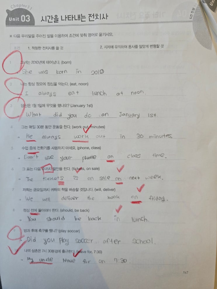 저희 컨셉트바이제이 영어에서는 매 방학마다 서술형 라이팅 특강을 실시 합니다. 에세이 라이팅이 아니고 어법에 맞추어 정확하게 쓰는 연습 입니다. 초등학생들이 제일 힘들어 하는 부분이 바로 전치사 입니다! 전치사를 정확하게 구사해야 올바른 영어실력을 쌓을 수가 있고 중학교에 가서도 서술형 문제를 틀리지 않을텐데 초등학생들의 경우 during, over, between 같은 전치사의 뜻도 모르고 제대로 사용하지 못하는 학생들이 많습니다. 두번 세번 반복 시켜도 실수가 많아서 학습시킨 후에 별도로 시험을 치릅니다. 반복하다 보면 익숙해지게 되요 언어니까요. 다음 사진은 저희 학원에 초3부터 와서 올해 중1이 되는 학생의 학습지 입니....... <img src="https://blogthumb.pstatic.net/MjAyNjAyMjVfMzcg/MDAxNzcxOTg2NDA5MTE1.xy5M5NHjlZLq233MqGhfN90Vrc4qkVUzfBdXX1Uj_xMg.EoEbLF14oCOLyqVGZLnBGuzPrOF9bkBr-dmNKJp2aG4g.JPEG/900%A3%DF20260225%A3%DF112244.jpg?type=s3" />