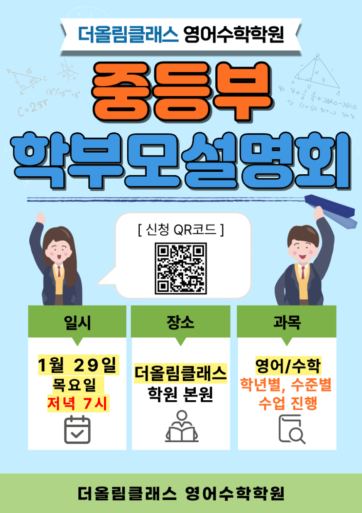 [서창동수학학원] 2026년 ❤예비 중1 - 예비 중3❤ 중등부 학부모 설명회
