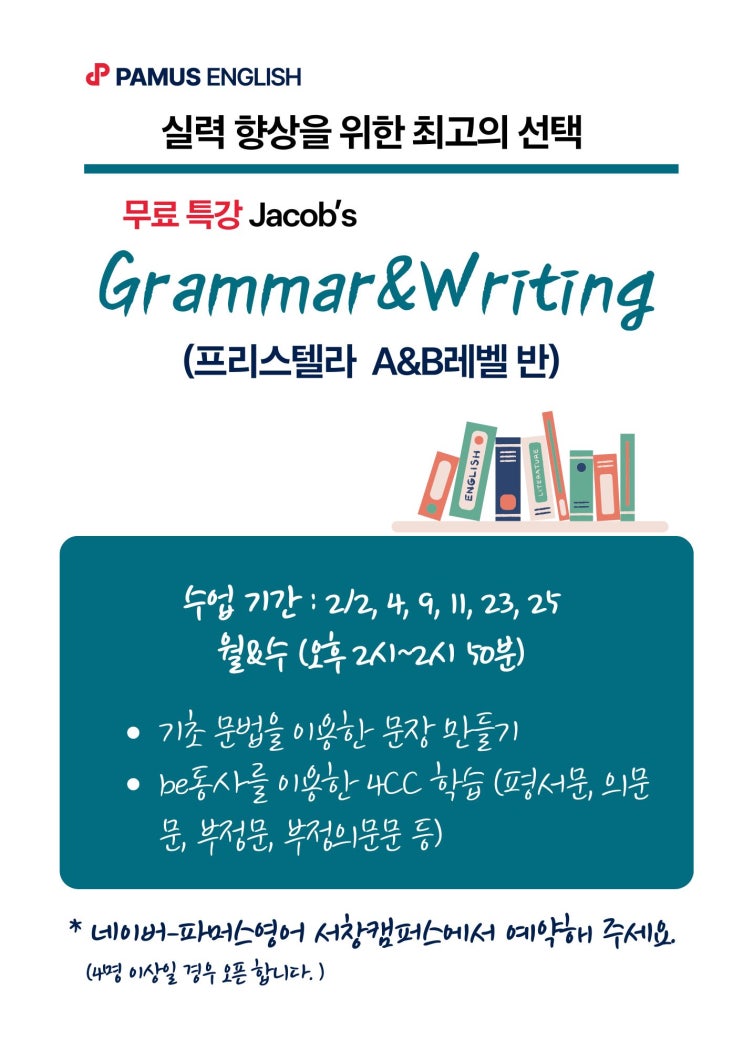 파머스어학원 서창동 캠퍼스-Grammar & Writing 특강 안내