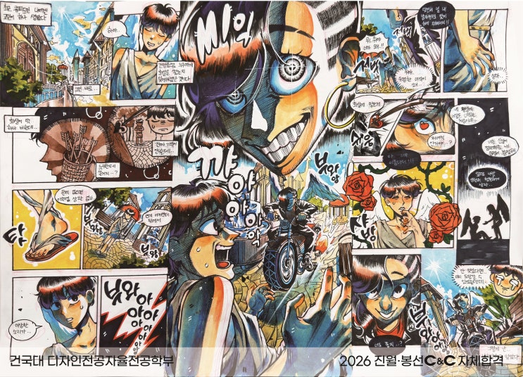 안녕하세요. 봉선 씨앤씨입니다. 이번 봉선, 진월 씨앤씨 수시 입시에서 건국대 디자인조형자유전공학부에 4개 합격했습니다!!!! 26.91:1이라는 높은 경쟁률에도 당당한 실기 실력으로 합격한 우리 친구들 정말 축하드립니다! 엄청난 경쟁률을 뚫고 합격한 진월, 봉선 씨앤씨 학생의 합격 재현작입니다. 씨앤씨 진월, 봉선 캠퍼스만의 올해 디자인, 만화애니 분야 입시 재원생은 총 54명이며, 중복 합격을 포함해서 총 129개 대학에 합격하는 우수한 성과를 거두었습니다. 특히 홍익대학교(서울본교), 국민대학교, 건국대학교, 청강문화산업대학교, 경희대학교 등 디자인·애니메이션 계열 최상위권 대학에서 다수의 학생들이 합격 및 장학합격을....... <img src="https://blogthumb.pstatic.net/MjAyNjAxMDdfMTE3/MDAxNzY3NzgxMjg3NzM5.yXU2ZlbTZsM7gbdNmBw40cuSABe9QdnaQMFVIL6cibwg.ZsPS0NOpK9yB3SP6Rnio4AK2SvFsb-2inmhZdz_NQ8Mg.JPEG/%C7%D5%B0%DD%C0%DB-13.jpg?type=s3" />