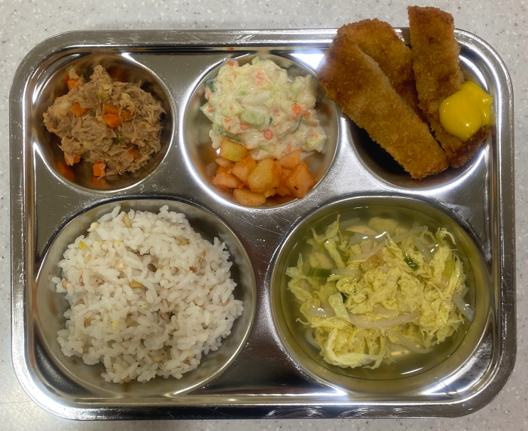새우까스*머스타드소스 참치야채볶음 코울슬로 깍두기 크래미달걀국 잡곡밥 718kcal/27g <img src="https://blogthumb.pstatic.net/MjAyNjAyMTBfNTYg/MDAxNzcwNzAyOTgzNDM5.FyA-0WPkW8EhS4BTuTKWBIjZkF8Xwm154wZO4iDMRcog.Ad0luZqvuhhWppUPgz1_COJCcOvaznjmwE4QxnEsx18g.PNG/image.png?type=s3" />