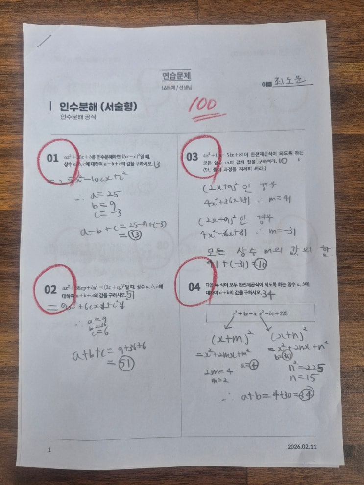 예비 초5 인수분해 시험지(서술형)