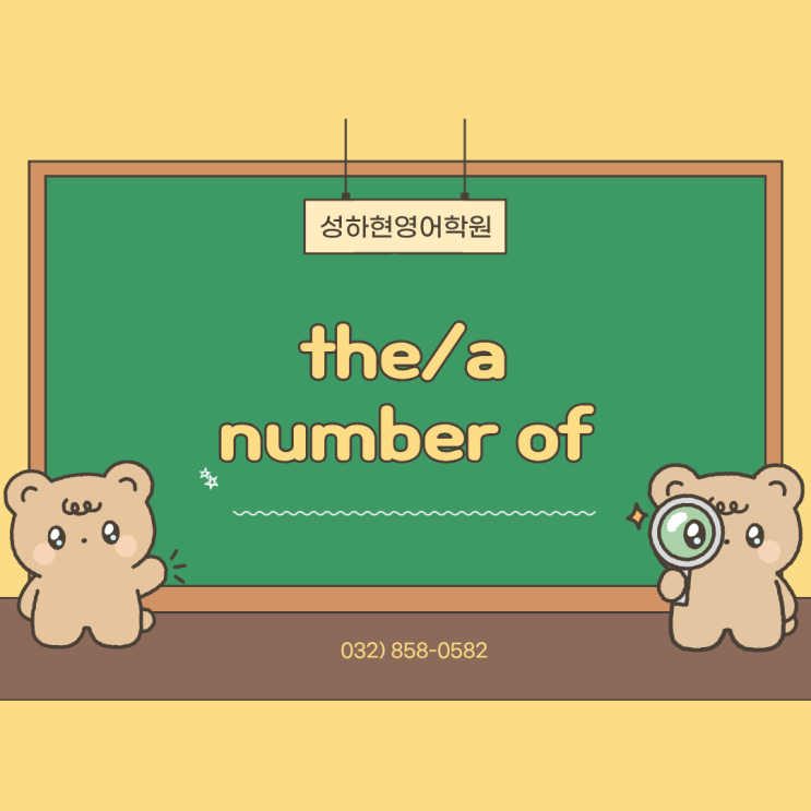 the number of 와 a number of 는 매우 비슷하게 생겼지만, 그 뜻과 사용 방법은 다르답니다. 때문에 문법 문제로도 자주 출제돼요! 오늘은 이 두가지를 비교해 보겠습니다. 1️⃣ the number of + 복수명사 + 단수동사 의미: ~의 “숫자(개수)” 자체 포인트: number(숫자) 가 주어이기 때문에 단수 취급 예문 The number of students is increasing. → 학생 수가 증가하고 있다. (증가하는 건 ‘학생들’이 아니라 ‘학생 수’) The number of cars has decreased. → 자동차 수가 줄었다. ✔️ 동사는 항상 단수 (is / has / was 등) 2️⃣ a number of + 복수명사 + 복수동사 의미: 많은 ~ (= many) 포인트: 실제....... <img src="https://blogthumb.pstatic.net/MjAyNjAyMTFfMjcg/MDAxNzcwNzkyMDIwMjMy.lZud2vWX_thbSh9GKnBbv9qck3VjtbTuY5gT4BZItSQg.YoN1WjQA3t2R4iS5evKeZjRMTj0VQQhmYMW6WLt8HP0g.PNG/1.png?type=s3" />