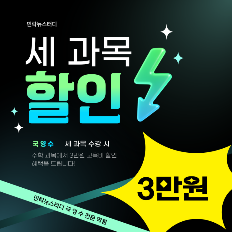 <민락동학원> 세 과목 할인