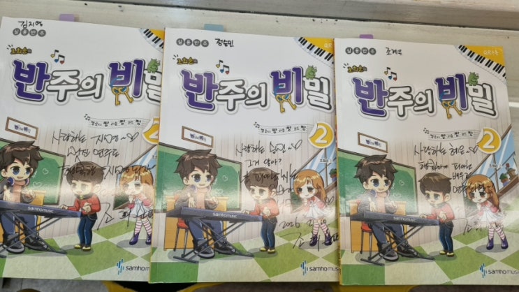 얼마 전 반주의 비밀-(반비) 선생님들 스터디 모임에서 반비 저자 조희순 교수님께 우리 아이들 반비 교재에 싸인을 받아 왔어요~^^ 전 학원에서도 이 교재를 썼고 현재 아이들은 반비 시리즈로, 성인은 성인 반비, 성인 ccm반은 교수님의 다양한 ccm교재들로 수업을 하고 있어요. 아이들의 이름까지 써주시며 남겨주신 따뜻한 메세지~ 역시나 아이들이 좋아하더라구요! 몰라서 배우는건 아닙니다.ㅎ 나는 알아도 어떻게 가르쳐야 쉽게 받아 들이는지~ 어떤 점을 더 부각해야 저자의 취지대로 전달이 되는지를 함께 연구하고 풀어내는 선생님들의 수업이라 매우 유익한 시간입니다. 가끔씩 제가 연습하고 있으면 아이들이 물어봐요. 쌤~ 왜 연습....... <img src="https://blogthumb.pstatic.net/MjAyNjAyMjdfNDIg/MDAxNzcyMTE5NDM3MDU5.0e-m8tDb3aoOO7-TGak5AzuuN22QF2ROCfl7BVKrpp0g.9MRZviky71UCC82dSLV5J6rkLECchOJB4SABbRAmEmog.JPEG/900%A3%DF20260211%A3%DF115214.jpg?type=s3" />