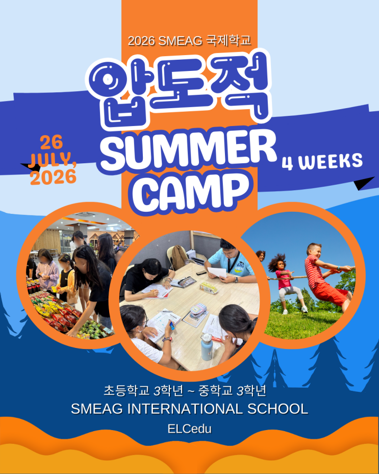 “Education is the most powerful weapon which you can use to change the world.” 방학은 단순한 휴식이 아니라 아이의 성장 방향을 바꿀 수 있는 시간입니다. 우리 아이에게 영어는 어떤 기억인가요? 시험을 위한 공부가 아닌, 나의 생각을 전하는 설레는 도구가 되길 바랍니다. 온종일 영어로 듣고 말하며 생활하는 몰입의 경험은 아이의 입을 열게 하고 마음을 자라게 합니다. 함께 먹고 자며 우정을 쌓는 공동체 생활 속에서 아이는 책임감을 배우고, 새로운 세상을 향해 한 걸음 더 나아갑니다. 이번 여름, 영어 향상을 넘어 아이의 인생에 소중한 출발점이 될 특별한 경험을 시작합니다. 여기서 학부모님들이 걱정하시고 궁금해하시는....... <img src="https://blogthumb.pstatic.net/MjAyNjAyMjdfMTc3/MDAxNzcyMTYzOTE4MjY3.PeFrgwCRxw5gn_HhFE56Jar2ykJK7Y5rW63oFI5clSAg.n4k6NUa8Wm_hcWY-FjdH7DDcstiQSxvT_ns0NgistmAg.PNG/2026_SMEAG%BD%E6%B3%D7%C0%CF2.png?type=s3" />