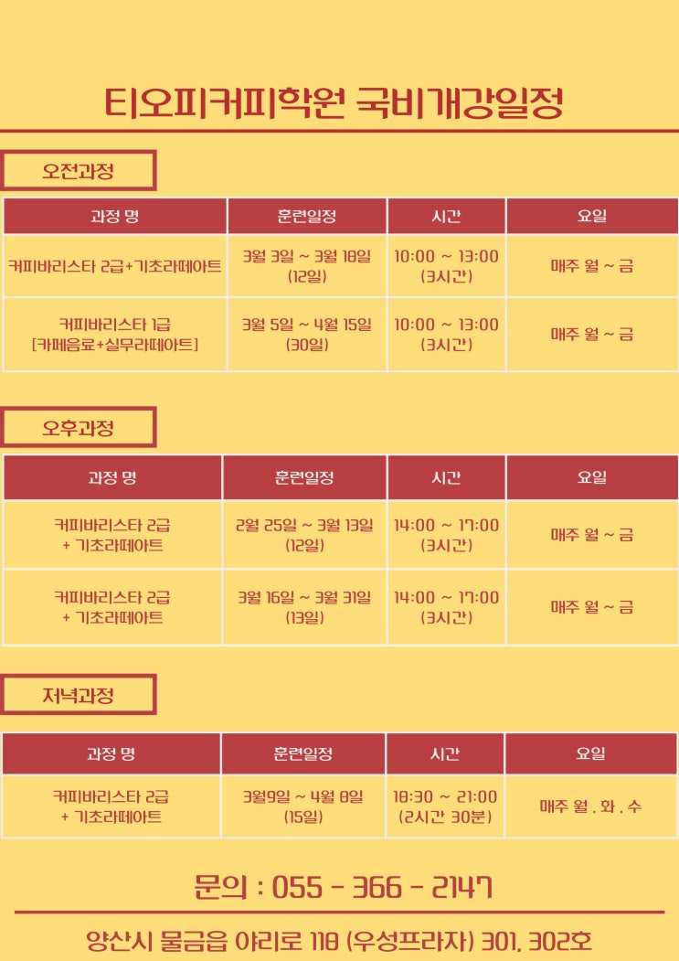 3월 바리스타 국비과정 개강일정[양산바리스타, 양산바리스타국비학원]