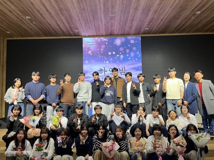 사운드맵 제 2회 정기 콘서트 "하얀밤" 공연 후기 궁금하시죠~?? 오늘의 포스팅은 사운드맵의 제 2회 정기 콘서트 "하얀밤"의 현장을 여러분과 함께 공유해보고자 찾아왔습니다~ 정말 많은 관객분들이 참여 수강생들을 응원해주시기 위해 함께 자리해주셨는데요~ 생각보다 많은 관객 수에 자리가 모자랄 정도였습니다! 열심히 준비한 수강생들이 준비한 무대 관객분들의 열띤 환호가 수강생분들께 많은 격려가 되었고 더욱 더 열정적인 무대로 보답할 수 있었다고 합니다~! 멋진 무대를 위해 지난 3개월동안 개인 연습과 합주 수업을 들으며 열심히 준비한 수강생들!! 좋은 경험이 되었길 바라며 함께 그 현....... <img src="https://blogthumb.pstatic.net/MjAyNjAyMTFfOTcg/MDAxNzcwNzkxNjgzNzkx.-4mH9LDM9Ff_6Q4XTl-jPhwBLZGCksKWkKckCdKRgRMg.O7_FmQwOnb6jAlJyL1yeeNpicel9_HJAcEFI9RFeWTUg.JPEG/%B4%DC%C3%BC%BB%E7%C1%F81.jpg?type=s3" />