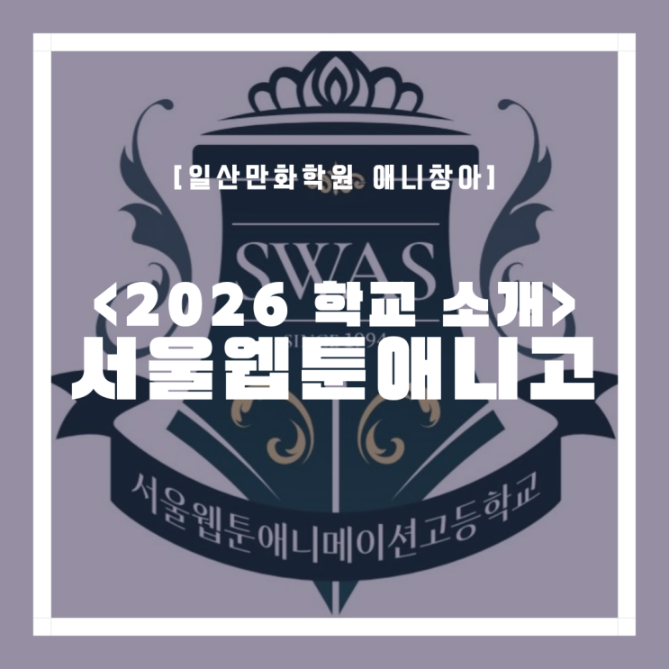 안녕~하~세~~요? 일산만화학원 애니창아입니다. 오늘은~ 웹툰. 애니메이션 진로를 고민하는 학생과 학부모님을 위해 일산애니창아에서 학교를 소개해드리는 시간! 최근 몇 년 사이 웹툰을 제대로 배우려면 어느 고등학교를 가야 할까? 애니메이션 전공을 고등학교 때부터 선택하면 어떨까? 하는 고민을 가진 학부모님 및 학생들이 많아졌는데요. 대입 뿐 아니라 만화애니 고등 입시에도 관심이 많아진 요즘! 꼭 알아두면 좋을 학교에 대해 오늘 일산애니창아에서 소개해드리려고 합니다 :3c 바로바로~ 서울웹툰애니메이션 고등학교 소개 오늘 일산애니창아에서 서울웹툰애니메이션 고등학교가 어떤 곳인지, 어떤 교육을 하고 어떤 진로를 지....... <img src="https://blogthumb.pstatic.net/MjAyNjAyMTNfMTQ1/MDAxNzcwOTU5MDA1MTE2.WWFnapRUn0DhusHV60Z-qNOEawfW9s90QHT4z07y30sg.RGuded5xdc-HvztdOK3vcYjPwfBjhAoStqlxVOrOoM4g.PNG/%C0%CF%BB%EA%B8%B8%C8%AD%C7%D0%BF%F8_%BE%D6%B4%CF%C3%A2%BE%C6_2026%C7%D0%B1%B3%BC%D2%B0%B3_%BC%AD%BF%EF%C0%A5%C5%F7%BE%D6%B4%CF%B0%ED.png?type=s3" />