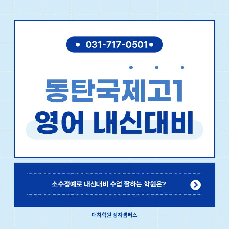 안녕하세요! 동탄국제고 영어 내신, 압도적인 결과로 증명하는 대치학원 정자점입니다. 이번 동국고 1학년 1학기 중간고사가 다가오고 있습니다. 이번 동국고 1학년 중간고사는 서술형 없이 객관식으로만 출제될 예정입니다. "서술형이 없으니 쉽겠지?"라고 생각한다면 위험합니다. 서술형이 빠진 자리는 더 정교해진 어법 변형과 함정이 가득한 영어 선택지가 채우게 됩니다. 동국고 특유의 까다로운 변형 문제와 영문 선택지를 공략하지 못하면 1등급은 멀어집니다. 단 한 문제 차이로 등급이 바뀌는 객관식 승부, 대치학원은 학생 한 명 한 명이 빠짐 없이 준비해갈 수 있도록 소수정예 수업으로 진행합니다. 현재 수업에서 가능한....... <img src="https://blogthumb.pstatic.net/MjAyNjAzMjFfMjIg/MDAxNzc0MDc4MjE4ODQw.U4gZCdbR8aE48clj6dyFE1HqGbT3jL0bkVbDoRXPfaQg.K6NxaUHGfcBOE_qiTPtOhMJb52E3_oNvgnv5zQJdS0kg.PNG/1.png?type=s3" />