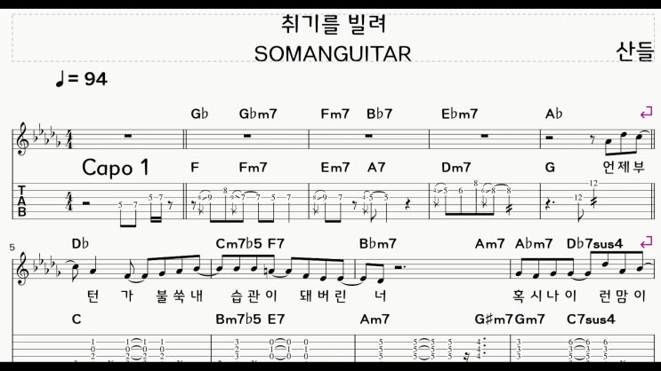 [Db Key] 산들 - 취기를 빌려 악보 행신동 실용음악학원 소만마을 기타교습소