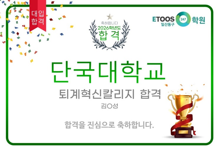 단국대 퇴계혁신칼리지 합격을 진심으로 축하합니다! 일산이투스247