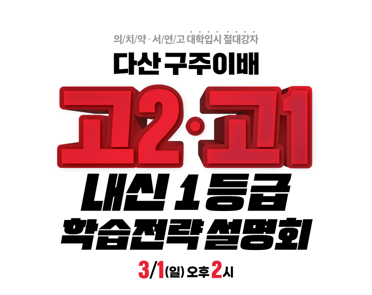 [다산구주이배] 고2·고1 내신1등급 학습전략 설명회 _ 3/1(일) 오후2시