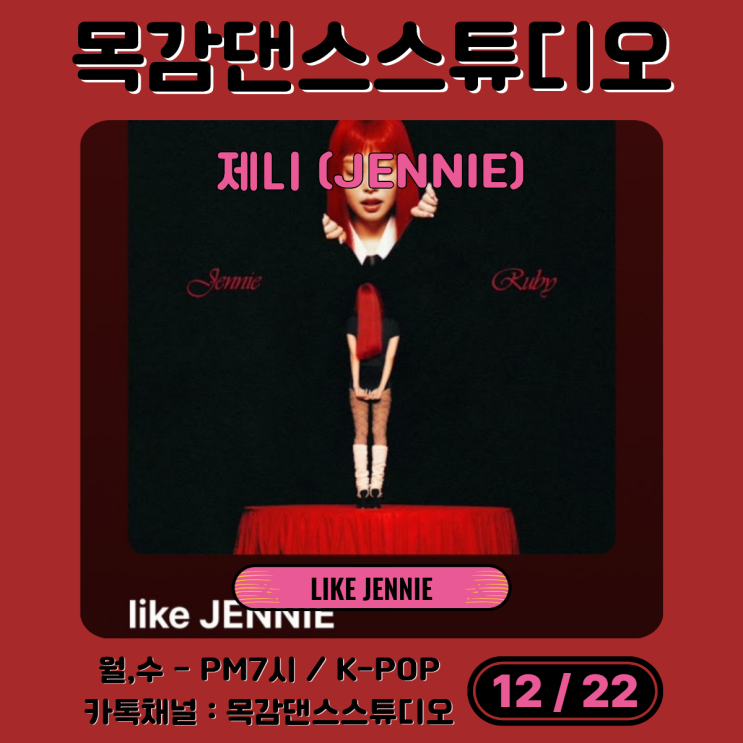 [목감방송댄스 / 시흥방송댄스] 월·수 저녁 7시 K-POP 수업|12월 22일(월)부터 제니 ‘Like Jennie’ 첫 진도!