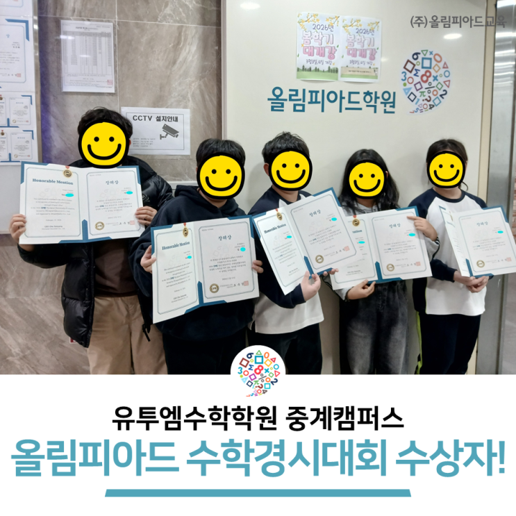 중계동 유투엠 수학학원 2026 올림피아드 수학학력평가 영예의 수상자들! 축하합니다