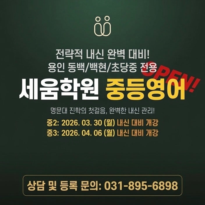 기흥고가 기흥구청주변학교에서 내신 시험이 제일빠릅니다. 교과서1과와 프린트변형 문제가 주로 출제됩니다. 구갈중 2학년의 경우 1과와4과가 시험범위입니다. 특히 4과의 수동태가 아이들에게 많은 공부량을 요구할겁니다. 작년의 경우 2학기 중간고사에 등장했던 수동태가 구갈중의경우 중간고사1학기에등장하게 된거입니다. 지금이라도 늦지 않았습니다. 밀착으로 봐주는 기흥삼성프라자영어교습소로 오셔서 상담 후 등록여부결정하세요. 소수정예 개별진도 모든궁금중들을 해결해 드릴게요. 010 5421 7308 신협건물옆 햄버거가게쪽 건물입니다. 여자원장이 한명한명 끼고 제대로 가르쳐줍니다. <img src="https://blogthumb.pstatic.net/MjAyNjAzMDdfNzMg/MDAxNzcyODgwNzg5NjAx.fFlIGyOZ8Q5zZBfq3pVnFRMYmkmDLrNINuh78J7lsJIg.v5rYpm_4GVfguwbEHpZsp_eX28RiAtZc76fFHOAfYj4g.JPEG/900%A3%DFScreenshot%A3%DF20260305%A3%DF190023%A3%DFCoupang.jpg?type=s3" />