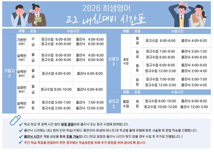 2026 내신대비 시간표
