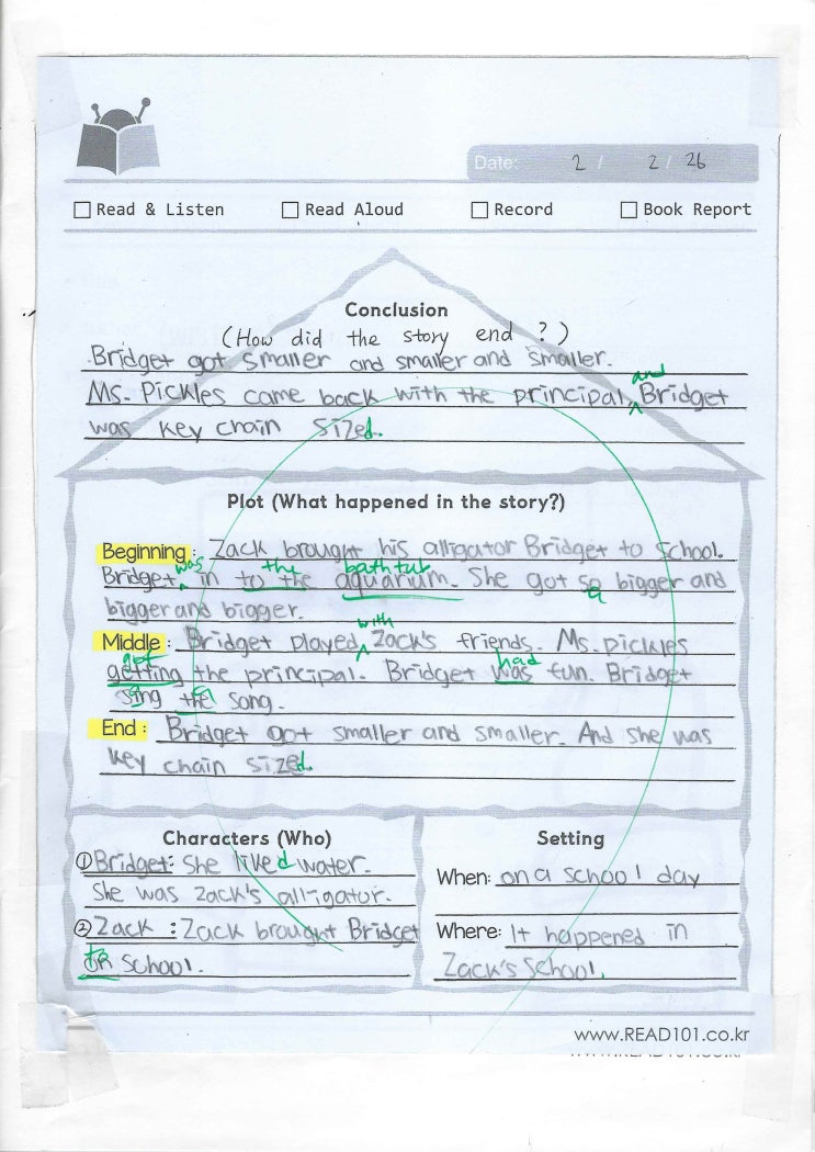 리드101/옥수점 초등 3학년 C*** Best Writing