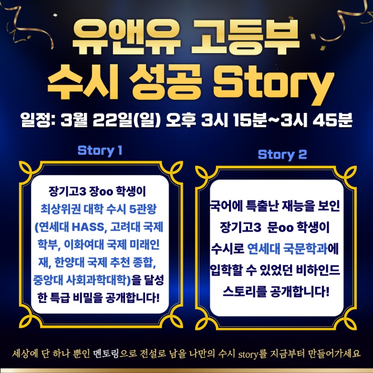 유앤유 영어 고등부 수시 성공 Story ; 3월 22일(일) 오후 3시 15분
