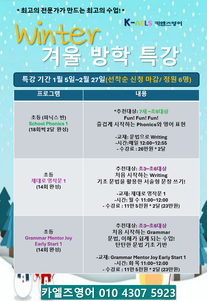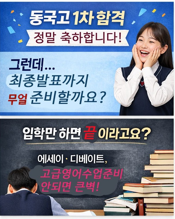 동국고 1차 합격을 축하합니다! 이제는 진짜 실력으로 승부할 시간-겨울방학, 벤자민잉글리쉬클럽에서 동국고 커리큘럼을 미리 준비하세요!