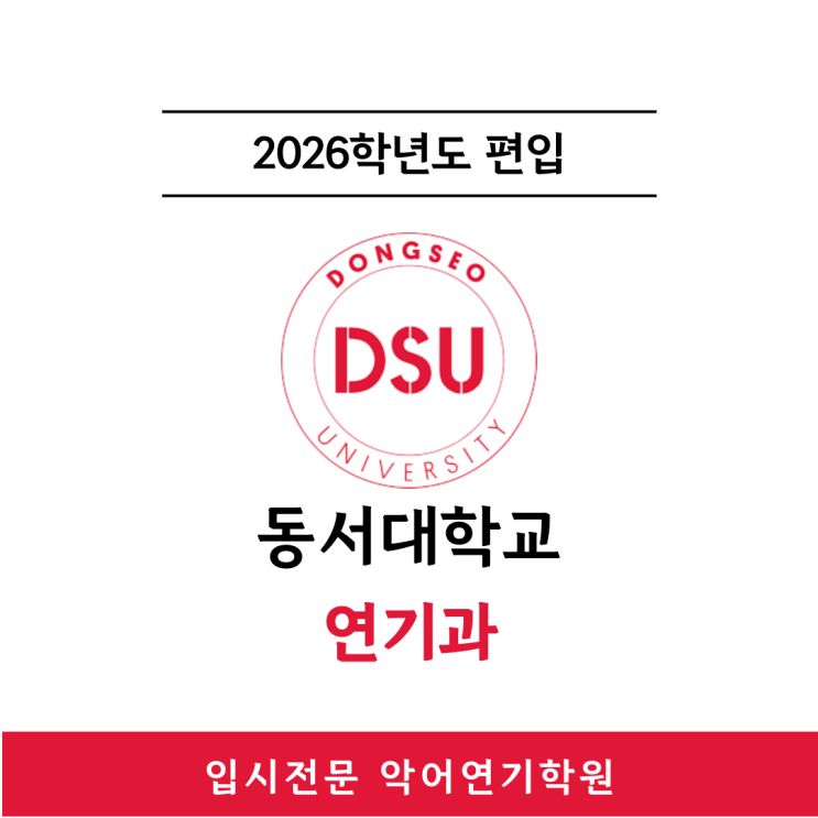 2026학년도 편입 동서대학교 연기과 모집요강에 대해서 알아보고자 하는데요! 동서대학교 연기과 예정자라면 반드시 알아야 할 정보! 합격을 위해선 입시정보는 필수입니다. 그럼 지금 바로 시작해 볼까요? 전형유형 동서대학교 연기과의 경우 2026학년도 편입모집에서 일반 5명, 농어촌 1명, 학사 1명 이내를 선발합니다! 경쟁률 2023학년도 3.43 : 1 2024학년도 0.33 : 1 2025학년도 0.00 : 1 원서 접수 및 실기고사 일정 ✔️ 원서접수 2026.01.02.(금) ~ 01.07.(수) 18:00 ✔️ 실기고사 - ✔️ 합격자 발표 2026.02.02.(월) 전형안내 ✔️ 전적대 성적 100% 성적 반영 - 지금까지 2026학년도 동서대학교 연기과 편입 모집요강에 대해서 알아....... <img src="https://blogthumb.pstatic.net/MjAyNTEyMTJfMTQw/MDAxNzY1NTI0NjI3NTE2.8AB1rmcWTS8uXItWJ3O1evJt-bqdPuK-TA__aniQE00g.b0uGq9V_rRC4ohxxqyxR_ysvtWcdc_btIerRfKsfgvgg.PNG/2026-%B5%BF%BC%AD%B4%EB%C7%D0%B1%B3-%C6%ED%C0%D4-%BF%AC%B1%E2-001.png?type=s3" />