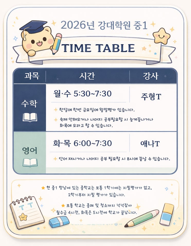 2026년 강대학원 중1 시간표 안내