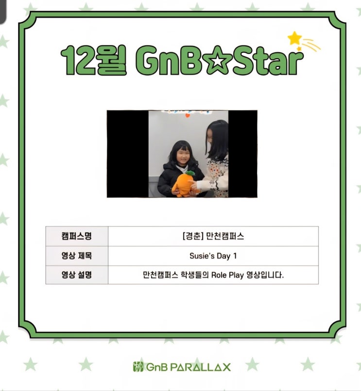 지앤비만천 최우수영어말하기영상 GnB STAR 상 수상