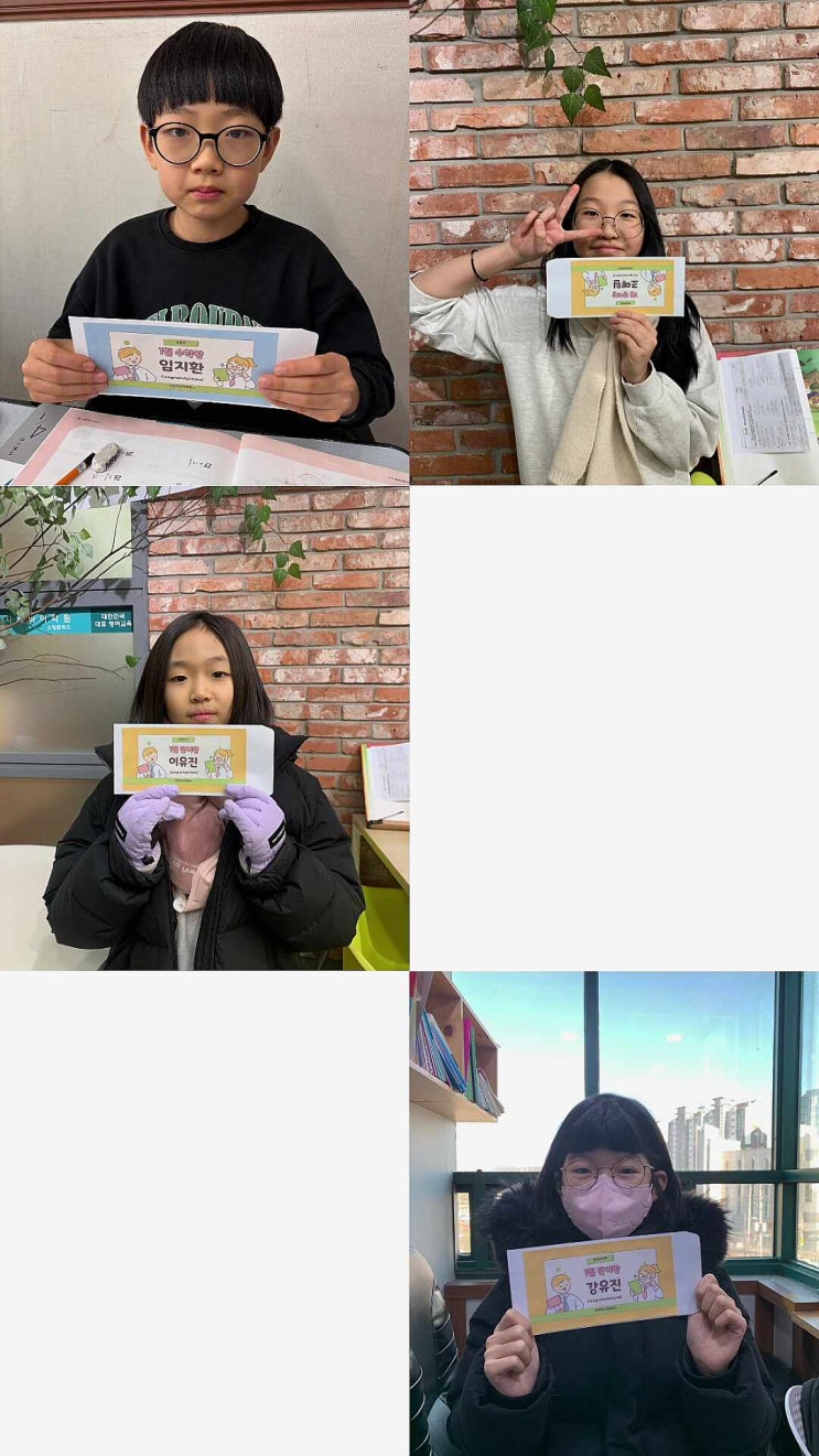 1월의 단어왕 수학왕 수상자들/결과보다는 과정을 중요시합니다 춘천 우두동 소양동 지앤비영어학원