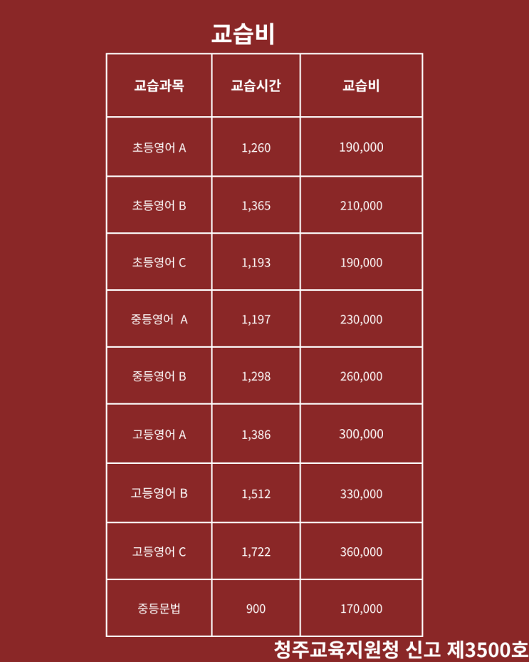 (공지)교습비