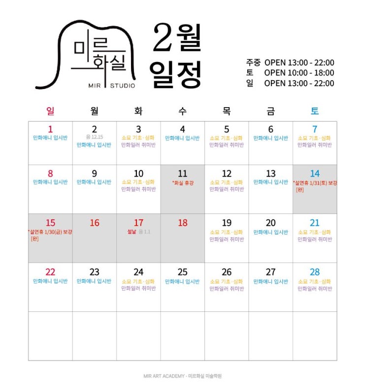 미르화실은 그림을 좋아하는 다양한 사람들을 위한 다양한 분야의 취미 전문 화실로 발전해 왔습니다. 그림의 원리와 이치를 이해하고 실력도 다지며, 취향에 맞게 힐링을 할 수 있는 공간입니다. 반복되고 지친 일상 속에 미르화실에서 예술로 통한 성취감과 행복, 조금이나마 여유를 느끼시길 바랍니다. 미르화실 미술학원 (Mir Atelier) 오창프라자1 건물 4층 (411호) 도로명: 충청북도 청주시 청원구 오창읍 중심상업로 7 지번: 충청북도 청주시 청원구 오창읍 양청리 821-4 우편번호: 28120 ph: 010-7177-7895 em: lcl__@naver.com <img src="https://blogthumb.pstatic.net/MjAyNjAyMTZfMjc1/MDAxNzcxMjMxNDI2OTc3.oxpnqUlXbc6cLBFkDIJjCczGAvNCWS5jpZhOi4B5Td4g.UD5GimPmBVDCrygjNtchUtoeJEPO5z8H0aZRGtroY5og.JPEG/2%BF%F9%B4%DE%B7%C2.JPG?type=s3" />