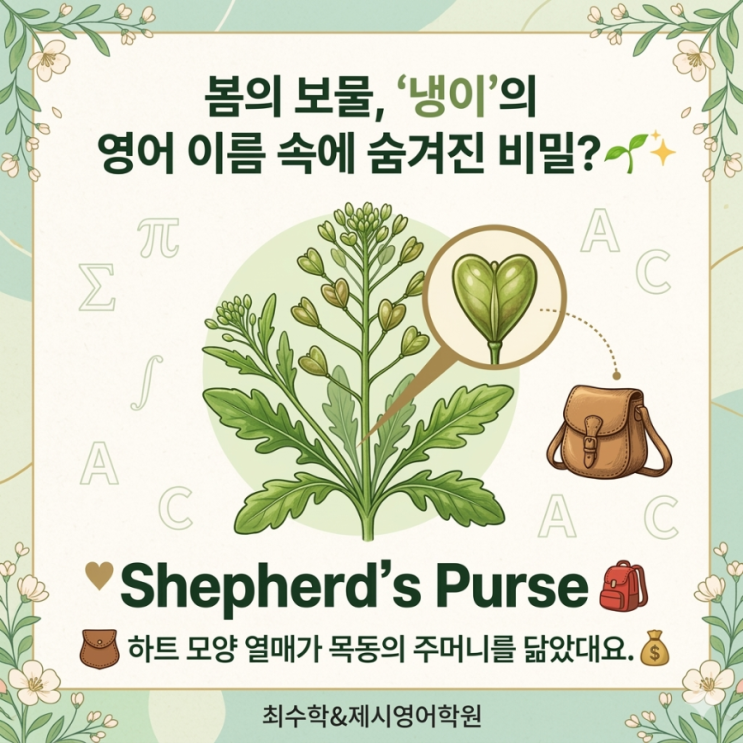 [충주 목행동 학원]목동의 주머니, '냉이'의 향기 속에 담긴 영어 공부 이야기 - 최수학&제시영어학원