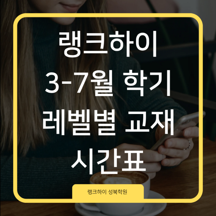 신학기 시작을 앞두고 있습니다. 레벨별 교재 및 시간표 안내드립니다. 2026년부터는 자체제작 교재사용을 통해 리딩, 문법 모두 저희 원에서 추구하는 방향대로 수업을 진행하고 있습니다. 3-7월 학기부터는 리딩, 문법 모두 더욱 알차고 어려워진 심화된 학습으로 구성됩니다. ⬆️ 초등부 레벨별 교재 안내 초등부는 어학 -> 입시의 흐름을 추구합니다 어학 교재부터 입시로 자연스럽게 대비가 가능한 구성으로 진행합니다. ⬆️중등부 레벨별 교재 안내 중등부는 점점 어려워지는 입시에 더 빠르게 대비할 수 있게 구성되어 있습니다. 독해는 어학형 지문 + 입시형 지문을 통해 구성되며, 문법은 개념 + 모의고사 및 텝스형 문법 문제를 병....... <img src="https://blogthumb.pstatic.net/MjAyNjAyMTFfNTMg/MDAxNzcwODE3MTg4MDkw.v65w1Jm9VibJDcY9ERmxl93WQBotv6OZ1pGeMNxRvM0g.M16yiri4_fkz3ImtGiLyzp2XK7vo3Z7YkSofefKbi24g.PNG/900%A3%DF%B3%EB%B6%F5%BB%F6%B0%FA_%C8%F2%BB%F6_%B1%F2%B2%FB%C7%D1_%BB%E7%C1%F8%B9%E8%B0%E6_SNS_%BA%ED%B7%CE%B1%D7_%C4%AB%B5%E5%B4%BA%BD%BA_%C5%B8%C0%CC%C6%B2_%BD%E6%B3%D7%C0%CF_%C0%CE%BD%BA%C5%B8%B1%D7%B7%A5_%B0%D4%BD%C3%B9%B0%A3%DF20260211%A3%DF223922%A3%DF0000.png?type=s3" />