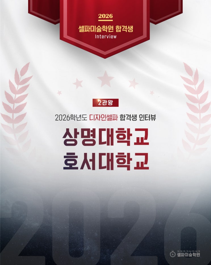 안녕하세요 천안 미대입시 전문 디자인 셀파미술학원입니다 : ) 2026학년도 셀파미술학원에서 상위권 미술대학에 많은 친구들이 합격했어요~! 상명대, 호서대 미대를 준비하는 입시생 친구들에게 합격 인터뷰 내용과 합격 재현작이 도움이 되길 바랍니다! 열심히 인터뷰에 응해준 김O학 학생의 실기 준비 과정 들어볼까요~?! 상명대학교 디자인학부 호서대학교 디자인스쿨 2관왕!! 2026학년도 상명대 디자인학부 &호서대 디자인스쿨 김O학 합격생 인터뷰 Q 지원한 전형/학과의 지원 동기는 무엇이며, 어떻게 준비했나요? - 선택 폭이 넓고 다양한 진로 탐색이 가능한 학부를 선택했습니다. Q 학....... <img src="https://blogthumb.pstatic.net/MjAyNjAzMDNfMTAx/MDAxNzcyNTE3MTQ2NDE2.U0DqtXjCwYyImDFrM6WtVpHPdCHIJdXYGx3HHzflTsog.RjFvXdarH3VanioxUPXBBsl7dALlBnDKRBL0GMfwvvwg.JPEG/%C0%CE%C5%CD%BA%E4.jpg?type=s3" />