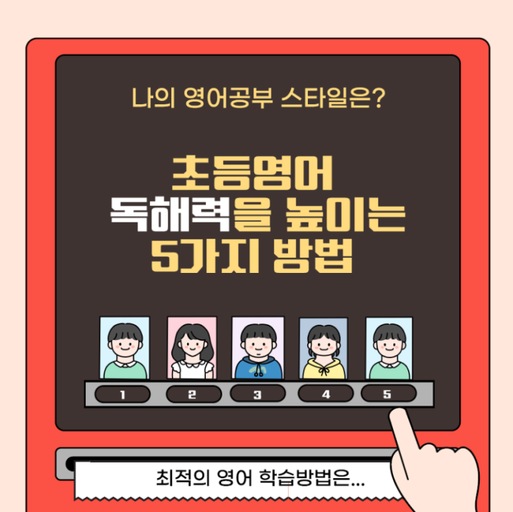 안녕하세요~ 눈높이 남천안교육국 입니다 : ) 오늘은 초등학생들의 영어 독해력을 높이는 효과적인 5가지 방법에 대해 이야기해보려고 합니다. 수능 영어시험(대학수학능력시험 영어영역)에서 독해 유형 문제는 약 28문제 정도 출제됩니다. 전체 영어 영역은 총45문제로 구성되어 있으며, 대체적인 구성은 다음과 같습니다. 듣기영역 : 약 17문제(1번~17번) 독해영역: 약 28문제(18번~45번) 영어독해는 영어실력의 기본을 다지는 중요한 과정이며 수능영어에서도 많은 비중을 차지합니다. 이번 글에서는 초등학생이 효율적으로 독해력을 키울수 있는 방법들을 구체적으로 알아보겠습니다. 첫번째 : 따라읽기 두번째: 모르는 단어 고르기 세번째: ....... <img src="https://blogthumb.pstatic.net/MjAyNjAyMTJfMTA4/MDAxNzcwODg4MTk0NzI3.wpjGu363119WEh73m9ra5JXid0U1t3Ltv-Z8M2by6JUg.BmVDH4oGe4unGzyeKWbT0s96pM68rOTQSfRlH9j08sMg.PNG/e1.png?type=s3" />