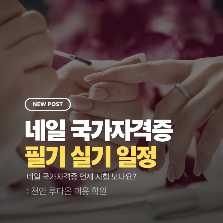 네일 국가자격증을 준비하는 분들이 가장 먼저 궁금해하는 부분이 바로 시험 일정과 접수 방법입니다. “필기 먼저인가요?” “실기는 언제 접수하나요?” “준비는 얼마나 해야 하나요?” 일정을 놓치면 준비가 되어 있어도 한 회차를 기다려야 하는 상황이 생길 수 있습니다. 그래서 오늘은 네일 국가자격증 필기·실기 시험 일정과 준비 흐름을 쉽게 정리해드리겠습니다. 네일 국가자격증 시험 진행 순서 네일 국가자격증은 다음 순서로 진행됩니다. ✔️ 필기시험 합격 ✔️ 실기시험 응시 가능 필기에 합격해야만 실기 시험 접수가 가능하기 때문에 일정 + 준비 기간을 함께 계획하는 것이 중요합니다. 네일 필기시험 일정 안내 네일 필....... <img src="https://blogthumb.pstatic.net/MjAyNjAxMzFfMjc3/MDAxNzY5ODMzMjY3NDUw.7uenS22cQyFLWLbN911Pprd6SWMC4ZqIiKc_qlXGflIg.9IEGy0F6e8KyY-xVeqr5yn65Fkr38bs_2H7qglNAoSEg.PNG/%3F%9D%B0%3F%83%89%EA%B3%3F_%EA%B2%3F%3F%A0%95%3F%83%89_%EA%B9%94%EB%81%94%3F%95%9C_%3F%82%AC%EC%A7%84%EB%B0%B0%EA%B2%3F_SNS_%EB%B8%94%EB%A1%9C%EA%B7%3F_%EC%B9%B4%EB%93%9C%3F%89%B4%3F%8A%A4_%3F%3F%3F%9D%B4%3F%3F_%3F%8F%AC%3F%8A%A4%3F%8A%B8_%3F%8D%B8%3F%84%A4%3F%9D%BC_%3F%9D%B8%3F%8A%A4%3F%3F%EA%B7%B8%EB%9E%A8_%EA%B2%8C%EC%8B%9C%EB%AC%3F_%287%29.png?type=s3" />