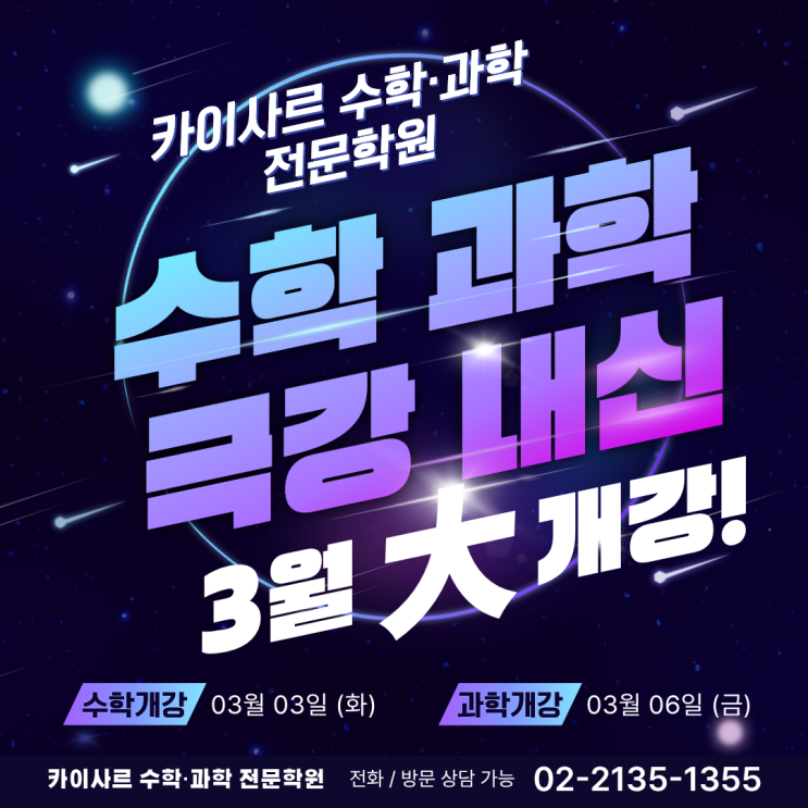 안녕하세요! 은평구에서 수학과 과학을 전문적으로 수업하고 있는 카이사르 이과 전문 학원입니다. 다름이 아니라 카이사르에서 (두구두구두구) 2026년 1학기 시간표가 나왔답니다!! 진짜 아 기다리고 어 기다린 카이사르 3월 대개강!!! 저희는 물리, 화학, 생명과학, 통합과학 수업을 진행합니다. 예비 고1을 위한 통합과학 수업은 월, 수, 토, 일 모든 학생의 선행과 현행을 위한 물리학 수업은 월. 수, 금, 토, 일 화학 수업은 월, 화, 수, 금, 토, 일 생명과학 수업은 월, 화, 토, 일 참고로 기초반에서는 정말 처음 듣는 학생들도 과학의 기본을 탄탄하게 잡을 수 있도록 수업을 진행합니다. 이번 개강은 조금 더 특별해요! 왜냐하면~~ 과학....... <img src="https://blogthumb.pstatic.net/MjAyNjAyMTlfMjU2/MDAxNzcxNDk1ODg5NDIy.KewU5pLxtAOqpgRUO4bPTh4k_ZwZkjE0YeorGeYRPe4g.wB3-bTCFTQ7lKBm6ATe8wJEMPaxz5LCKn9ydmWl-swcg.PNG/image.png?type=s3" />