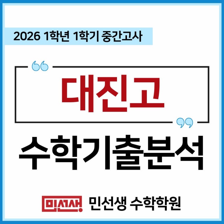 안녕하세요. #은행사거리수학학원 민선생 수학학원입니다. 민선생 수학학원의 고등부 선생님들이 분석한 자료입니다. 대진고의 재원생 혹은 학부모님들께서, 대진고 수학내신의 출제경향과 주요문항을 이해하는데 도움이 되시길 바랍니다. 대진고 1학년 1학기 중간고사 내신분석 들어갑니다! 2026년 대진고등학교 1학년 1학기 중간고사 수학시험은 전체적으로 난이도 편차가 뚜렷하게 드러난 구조의 시험이었습니다. (대진고등학교는 전통적으로 학교 내신 시험이 어려운 학교입니다.) 단순히 어려운 문제 몇 개로 변별을 주기보다는, 중반 이후부터 점진적으로 사고력을 요구하는 문제를 배치하여 학생들의 실력 차이를 자연스럽게 드....... <img src="https://blogthumb.pstatic.net/MjAyNjA0MjRfMTYx/MDAxNzc3MDI0MDA1MDQ5.Ml15pCRRRXRQ2VLvij24cahHeyAVsYu6AkZ4nATMa6Ig.gDwvST5GXHKVROw74-r5sg0S495vkAGAjIFypPmir4Eg.JPEG/%C1%A6%B8%F1%C0%BB_%C0%D4%B7%C2%C7%D8%C1%D6%BC%BC%BF%E4..jpg?type=s3" />