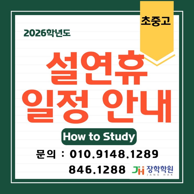안녕하세요! 장학학원입니다. 26년 새해가 시작된게 얼마 되지 않은거 같은데 벌써 2월 설이 되었습니다 ^^ 저희 장학학원은 설연휴 기간 동안 잠시 쉬어가고 연휴가 끝나는 2월 19일 다시 수업을 재개합니다. 행복한 설연휴 보내세요 !! <img src="https://blogthumb.pstatic.net/MjAyNjAyMTRfMTQ5/MDAxNzcxMDM3MzI0OTE2.bZvMzgriW3_VMmbW6TB-nMyyf-gelMoB1GKFe_2KWdEg.V8pd-H8jRSqgj_qds4UBHdyIdNs5eKI-FT7AYPT0w60g.JPEG/%BC%B3%BF%AC%C0%AF.jpg?type=s3" />
