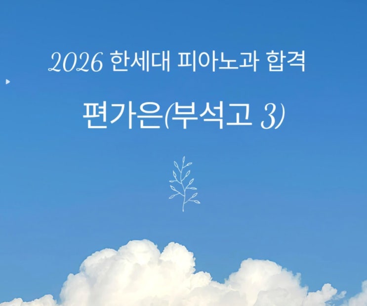 우리 가은이가 고1이 되던 해 피아노를 배우겠다고 왔다. 작고 마르고 힘도 하나도 없어 보이고... 제대로 배운적 없던 피아노는 건반을 누르고 소리를 내고 연습에 집중하게 되기까지 거의 일년의 시간이 필요했다. 독보와 힘을 기르고 음악과 소리를 배우기 위해 참 어렵게 지나온 3년이었다. 그러나 시간은 부족했고... 결국 한세대 한곳만 합격하였다. 그 결과 앞에서 우리는 재수를 결정했다. 모두 내 탓 같아서 두근거리고 쓰린 마음이 좀처럼 진정되지 않지만 힘든 시간은 결국 지나갈것이다. 그 시간의 끝에 함께 웃으며 서 있길 기도하고 또 기도해본다. <img src="https://blogthumb.pstatic.net/MjAyNjAyMDdfMTIw/MDAxNzcwNDY3NTQ2MTY1.pttec5KxIhILO3Z73wRbcJ24aTKjdoPt-ccMD0NI5Pkg.0Ed0gbMgCjno8lWPB5ilDznl9n5R5kcDx0TsqM6Q2msg.JPEG/900%A3%DF%C1%A6%B8%F1%C0%BB_%C0%D4%B7%C2%C7%D8%C1%D6%BC%BC%BF%E4..jpg?type=s3" />
