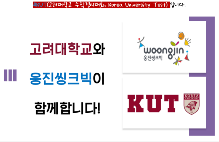 안녕하세요 웅진신도림학원입니다. 요즘 학부모님들 사이에서 수학 학습 방향에 대한 고민이 정말 많아졌죠. 단순히 문제를 많이 푸는 것이 아니라, 아이의 ‘진짜 실력’을 확인하는 것이 중요해지고 있습니다. 그래서 준비했습니다! KUT 수학경시대회란? 고려대학교가 주관하는 전국 단위 수학 학력평가 시험으로, ✔️ 초등 1학년 ~ 중등 2학년까지 응시 가능 ✔️ 사고력 중심 문제 출제 ✔️ 개념 이해 + 문제 해결력 + 응용력 종합 평가 단순한 연산 시험이 아닌, 아이의 수학 사고력을 제대로 확인할 수 있는 시험입니다. ✨ 왜 KUT 준비가 중요할까요? 요즘 수학은 달라졌습니다. ❌ 선행만 빠르게 하는 학습 ❌ 반복 연산 위....... <img src="https://blogthumb.pstatic.net/MjAyNjAzMjBfMjc3/MDAxNzczOTY4NTA0MDAz.PLqest-rjDVQjEvAn1611I26r7JeTMhJ86CrxTJMHH4g.aqkROJLh09jlht3CBkeoNRVNnbElpAAUvWoPxAFsqgcg.PNG/image.png?type=s3" />
