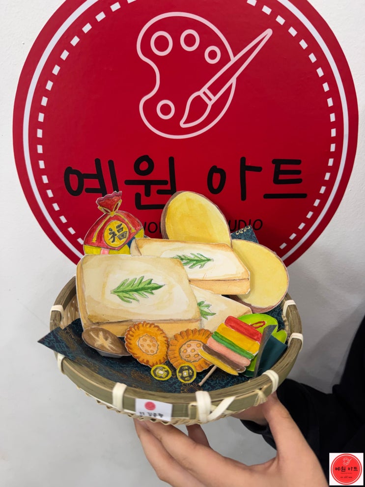 안녕하세요. 예원아트입니다. 2월 저희 예원아트에서는 명절을 맞이하여 전통음식을 주제로 작업해 보았습니다. 설날에 먹는 음식에 대해서 이야기해 보고, 친구들은 명절에 어떤 음식을 먹는지? 소쿠리에 담고 싶은 나만의 음식을 그려보는 시간입니다. 이미지 자료를 보며 우리 작가님이 소쿠리에 담고 싶은 음식을 그려주고 있어요. 채색은 물감을 칠하고, 디테일한 부분은 색연필로 명암을 넣어주기로 했어요. 저희 원 수업은 1회 수업으로 작품을 완성하는 방식이 아니라, 아이들이 한 작품을 이어서 꾸준히 완성해 나가는 커리큘럼으로 진행되고 있습니다. 우리 작가님 소쿠리에 벌써 많은 음식들이 있네요. 너무 귀여운 우리 작가님의 명....... <img src="https://blogthumb.pstatic.net/MjAyNjAzMTdfMTg4/MDAxNzczNzQ0MTIzMDk0.s1X-U8z9ay56VG7UjjKFoE8d5Z-DqYNMwgZiLpkuCIog.4F_itJWpAqERvlIjwrtZIrz_bz8MyvzwT2Mk7FVs-7og.JPEG/KakaoTalk_20260317_192103502_%2810%29.jpg?type=s3" />