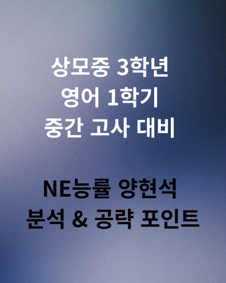 안녕하세요. ^^ 구미 상모동 초·중·고 영어 전문 더 지니어스 영어 학원입니다. 오늘은 상모중 3학년 영어(NE능률 양현석) 1학기 중간고사 대비 전략을 정리해 보겠습니다. 중3 학생들은 이제 고등 내신으로 이어지는 중요한 시기이기 때문에 중간고사 준비 방식이 매우 중요합니다. 1. 시험 범위 및 출제 특징 Lesson 1/Lesson 2/교과서 단어 /학교 프린트 교과서 본문 이해 + 문법 정리 + 단어 암기가 핵심입니다. 2. Lesson 1 핵심문법 분석 to부정사의 의미상 주어 형태: for + 목적격 + to + 동사원형 * 공략포인트 for 뒤에는 반드시 목적격( me / him / her / us / them ) 사용 It ~ to 구문과 함께 자주 출제 관계대명사의 계속적 용법 형....... <img src="https://blogthumb.pstatic.net/MjAyNjAzMTVfNjYg/MDAxNzczNTU4NzEwNzUz.McL5cNDzcyvwRkbgnxW5VUuMb1nP0MTnHFuXyOi9W0Qg.7F8oewgqK8oeMx8emHaGETuotQZnYUpY-t3jId-ZOLEg.PNG/900%A3%DF%BB%F3%B8%F0%C1%DF_3%C7%D0%B3%E2_%BF%B5%BE%EE_1%C7%D0%B1%E2_%C1%DF%B0%A3_%B0%ED%BB%E7_%B4%EB%BA%F1_NE%B4%C9%B7%FC_%BE%E7%C7%F6%BC%AE_%B1%B3%B0%FA%BC%AD_%BA%D0%BC%AE_%A3%A6_%B0%F8%B7%AB_%C6%F7%C0%CE%C6%AE%A3%AD1.png?type=s3" />