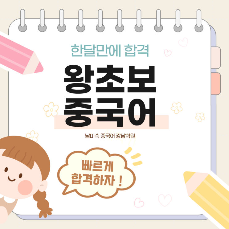 안녕하세요, 남미숙 중국어 강남학원 블로그 지기입니다! 요즘 샤오홍슈, 틱톡 등 여러 SNS 플랫폼에서 중국이 정말 대세인 거.. 다들 느끼셨나요? 그래서 그런 지 SNS를 통하여 오시는 수강생 분들이 더더욱 많아졌는데요! 그래서 준비하였습니다 :) 중국현지 18년차 선생님 께서 진행해주시는 남미숙 중국어 강남학원만의 한달완성 왕초보 HSK 3급 속성반을 소개해볼까합니다! 수강생 분들의 찐 후기 위와 같이 중국어 병음도 읽지 못 하는 상태에서 시작하신 수강생 분들이 26년 4월 기준으로 HSK 3급 100% 합격 이라는 수치를 찍었습니다 그럼 100% 합격 한 이 수업.. 어떻게 진행 되는 지 궁금하지 않으신가요? ✏....... <img src="https://blogthumb.pstatic.net/MjAyNjA0MjJfMTM4/MDAxNzc2ODU2MjU4NDQ4.oa1a5x25lt9KjlgiLGeCnqDRZ63oskrB8mpfWsXCeeQg.cVFCTQ6LJ3FiEf-M0UXp2pAsUccQR1FJl0_wm7gTvW0g.PNG/%BA%ED%B7%CE%B1%D7_%BC%D3%BC%BA%B9%DD_.png?type=s3" />