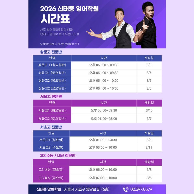 2026년 신태풍 영어학원 시간표