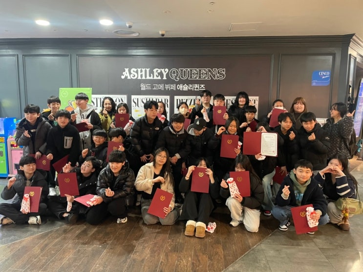 사동아카데미 초6 졸업파티 오늘 애슐리퀸즈에서 사동아카데미 초등 6학년 친구들의 졸업 파티를 함께했습니다! 맛있는 음식과 즐거운 대화 속에서 친구들과 추억을 나누고, 학원에서 준비한 졸업 증서와 선물을 전달하며 초등 과정을 멋지게 마친 우리 아이들을 축하하는 시간을 가졌습니다. 이제 중학생이 되는 우리 친구들! 새로운 환경에서도 자신감 있게 도전하고, 씩씩하게 성장하길 바랍니다. 사동아카데미는 늘 여러분을 응원합니다❤️ 오늘의 생생한 현장은 학원 밴드에서 확인하실 수 있습니다! #사동아카데미 #졸업파티 #초6졸업 #애슐리퀸즈 #새로운시작 중학생준비 함께성장해요 <img src="https://blogthumb.pstatic.net/MjAyNjAyMTNfNDQg/MDAxNzcwOTY4NTEyOTI1.AWL-qJ8NxL05414gL9X_5b0f6DBUJPAZ85I4BqS3n-Ig.__eWAJfKn0W6K35Qkux4wR-m7dc3OTY9uqs6-dYjajsg.JPEG/IMG%A3%DF2518.JPG?type=s3" />