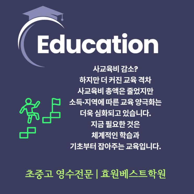 [ 창원 동읍 영어 수학 전문 효원베스트학원 ] 사교육비 총액 감소 뒤에 숨겨진 '교육 양극화'의 그림자