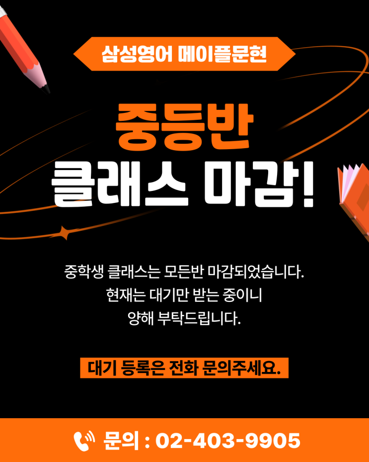 장지동 중1영어 중등반 모든 클래스 마감!